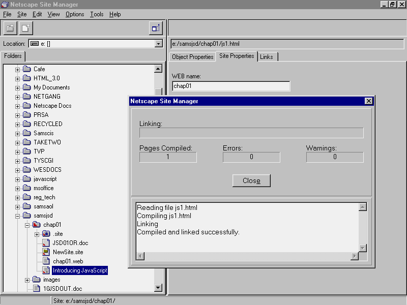 As mentioned previously, Server JavaScript code needs to be precompiled into a Web application before it can be run on a Web server. To compile a Web application you need to have access to the Netscape Site Manager application shown in figure 1.3.