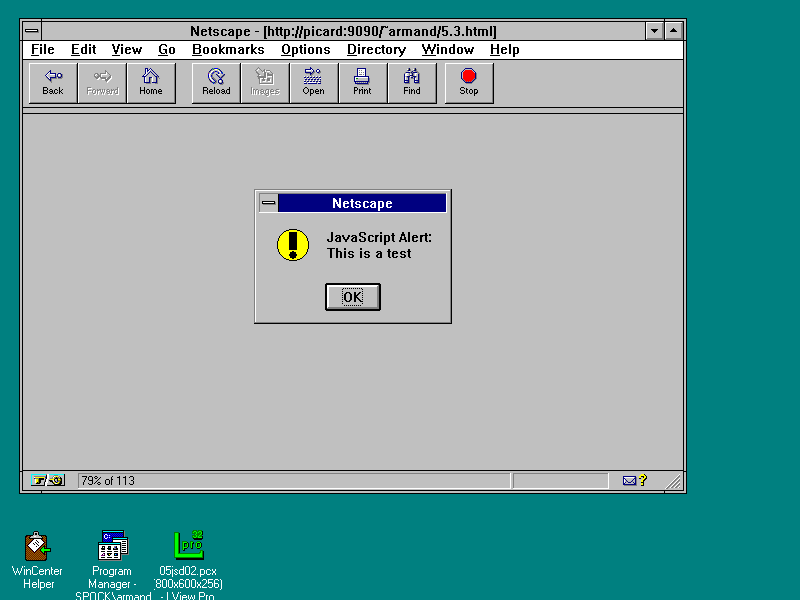 window.alert("This is a test");