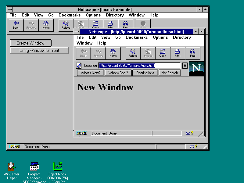 The following page provides two simple buttons: one creates a new window and the other brings it to the front, like in Figure 5.8: