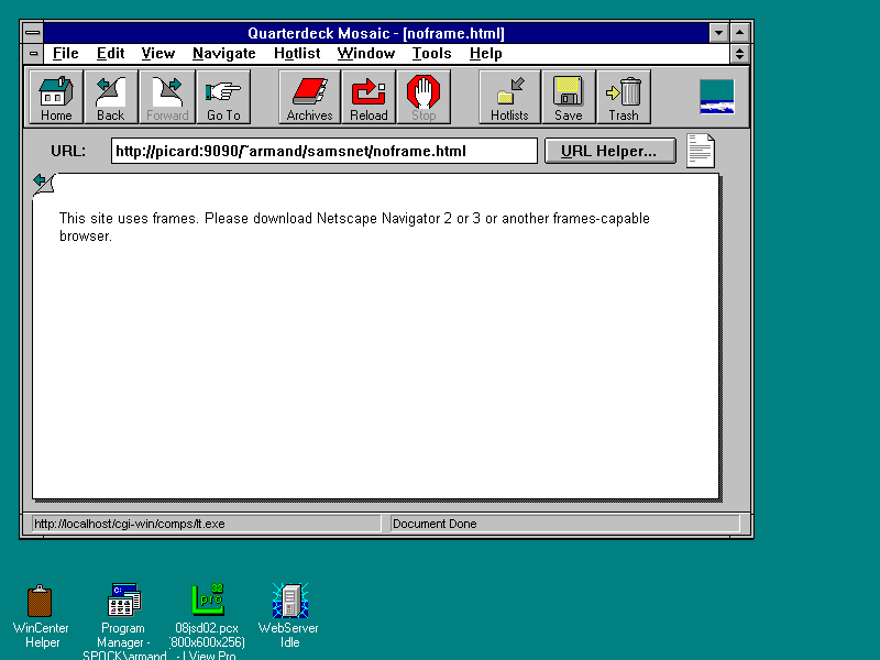 It simply wasn't possible for Web authors to create sophisticated interfaces involving fixed toolbars, menus, and work areas. Instead, anytime the user requested new information, the complete browser window had to be cleared and updated with a new document.