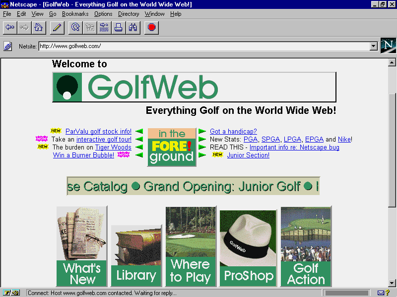 When this capability is incorporated into a Web browser such as Navigator 3.0, the true power of Java becomes apparent. Take, for example, the GolfWeb home page shown in Figure 14.1. The small window in the Middle of this page contains a window a lot like a ticker-tape display. In this window, headlines for all the latest breaking Golf news are scrolled across the window from right to left.