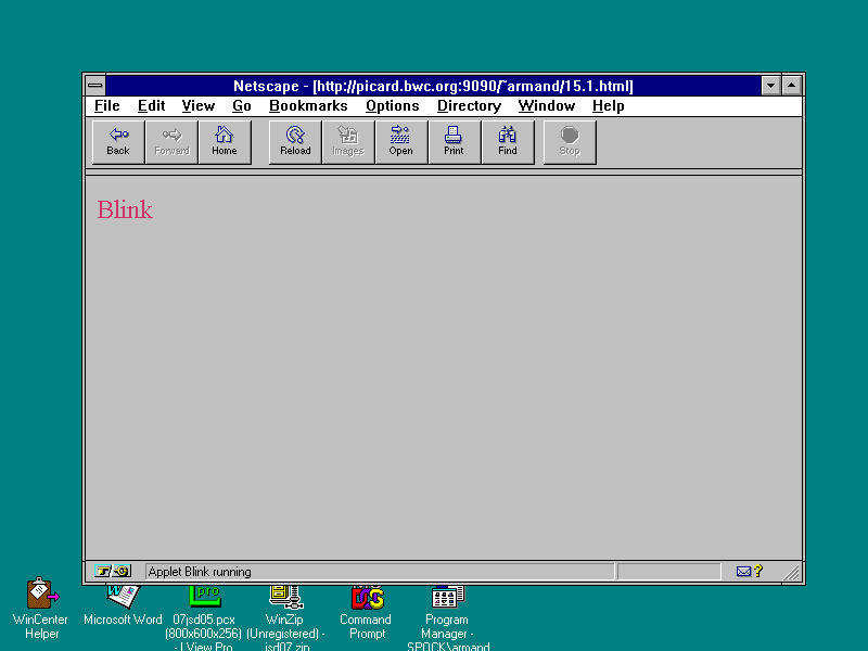 <APPLET CODE="Blink.class" NAME="Blink" WIDTH=300 HEIGHT=100>