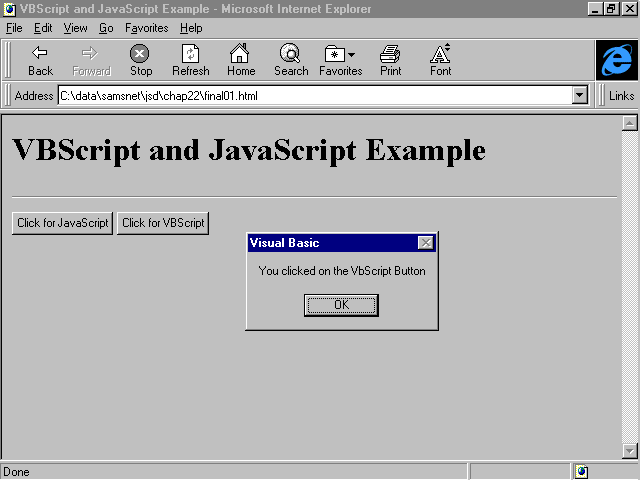 Figure 22.2. If the user clicks the VBScript button a message box is displayed.