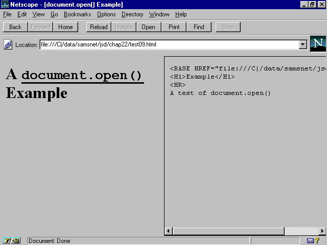 For instance, opening a document stream with document.open("text/plain") would create a stream for plain text, which means the text would be displayed as-is by Navigator.