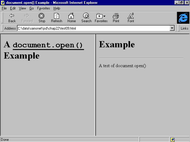 For instance, the following frameset uses the onLoad event handler to clear the document in the right frame and open a text/plain document stream in that frame. The document is displayed as plain text in Navigator but is treated as HTML by Internet Explorer: