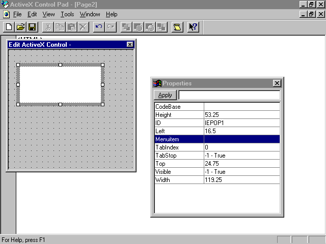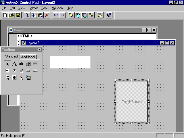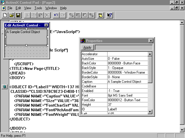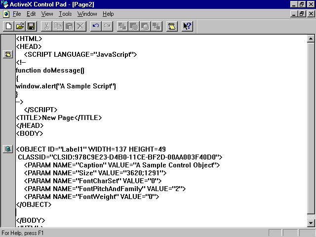Rather, because an HTML document is the core of building pages with objects and scripts, ActiveX Control Pad provides it's HTML editing window as a way to viewand changethe code automatically generated by the Control Pad's other development tools.