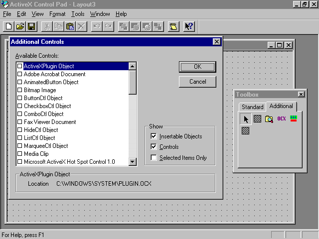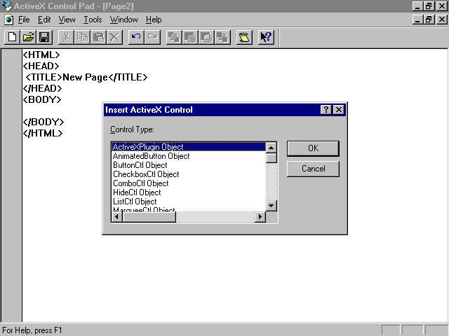 The Control Pad provides two ways to include ActiveX controls. One is to include individual controls and the other is to build a layout that includes multiple controls in an HTML Layout.